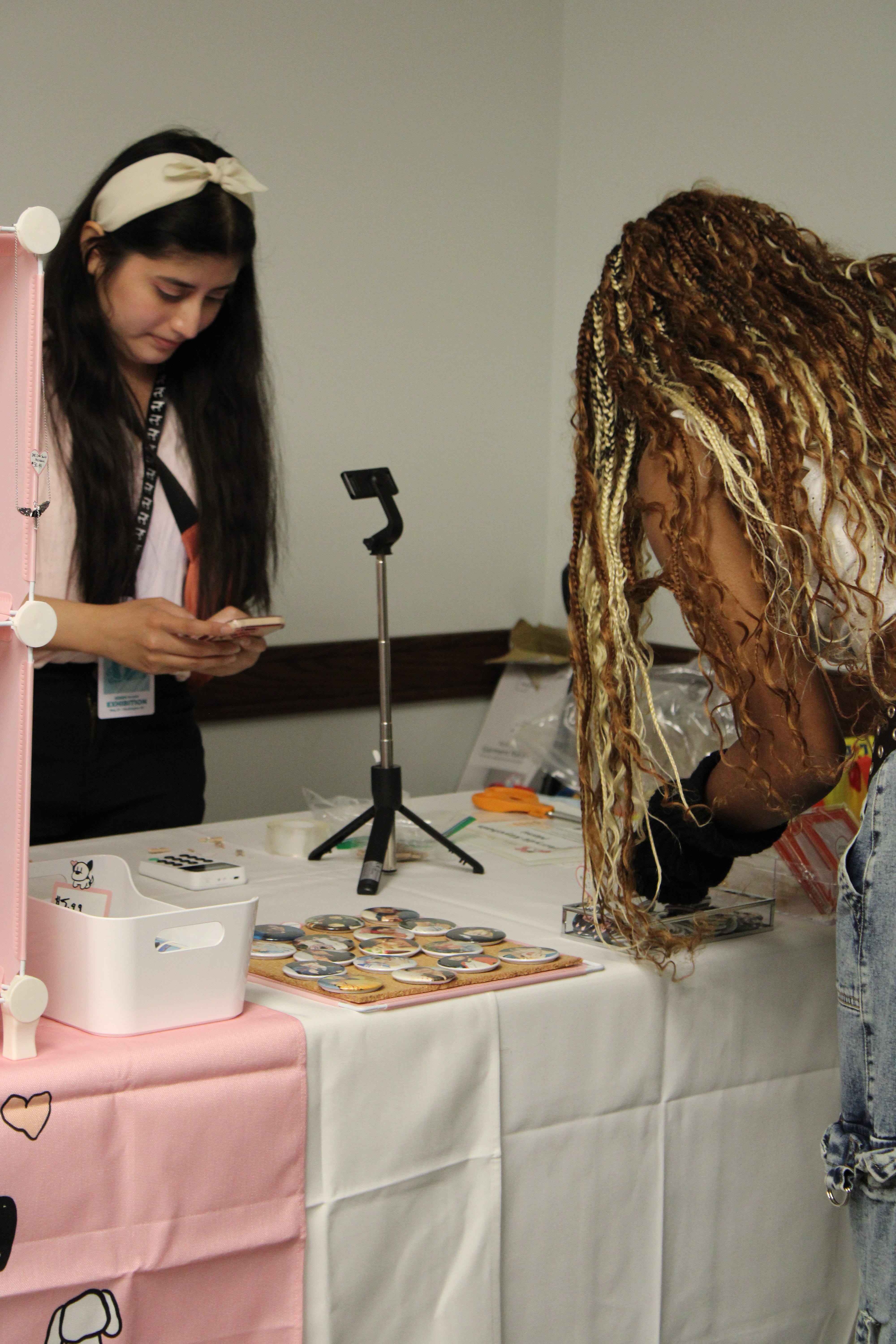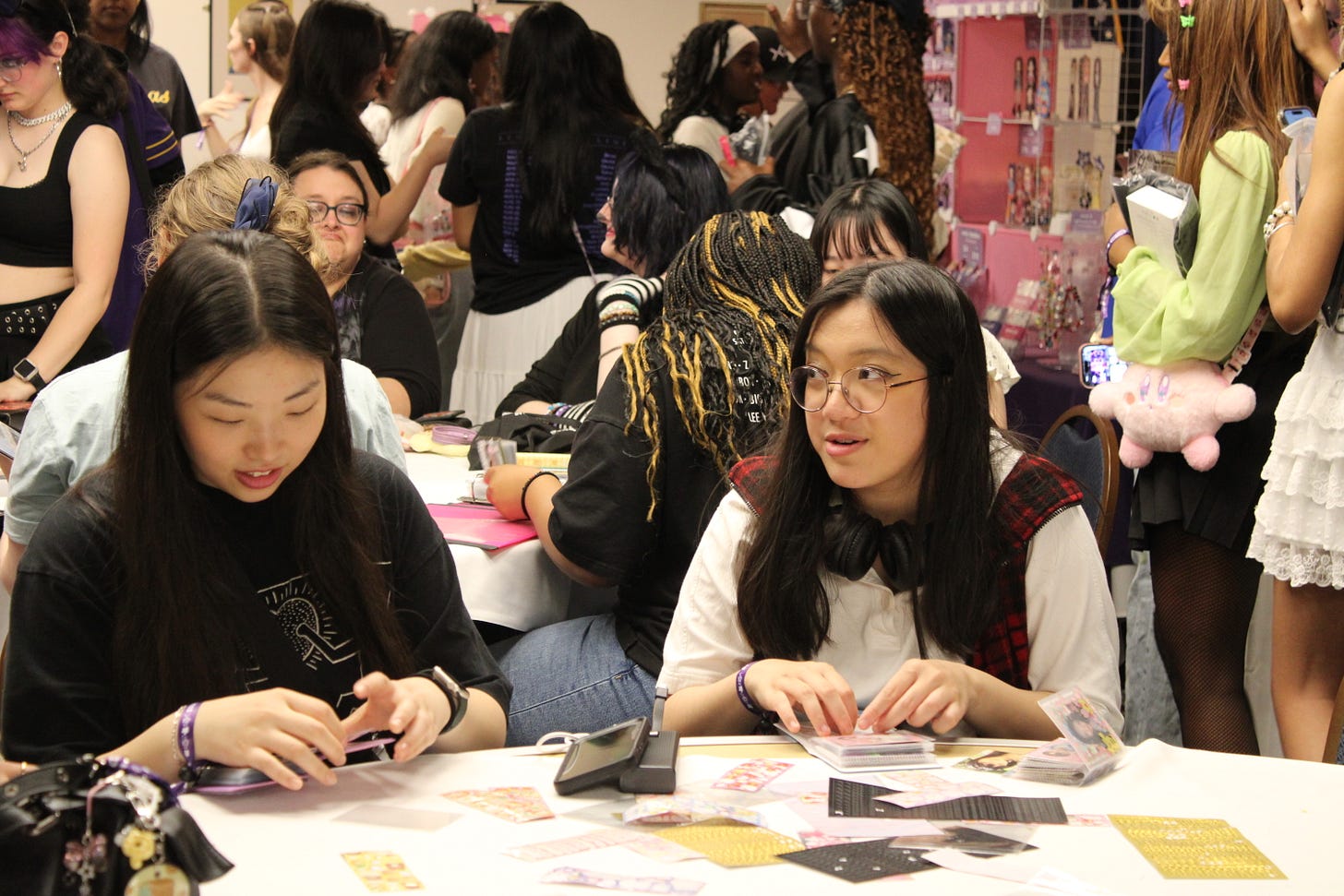 Down the hall from the lively masterclasses was the vendor hall and photocard trading space. Fans could buy handmade merch from local artists and vendors while trading K-Pop photocards and decorating them. Many attendees gathered in the hallways, connected with each other, traded bracelets and trinkets, and brought the magic of the convention together in this space.